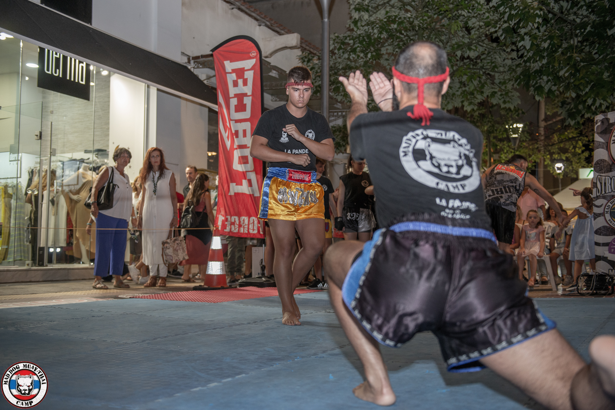 Με επιτυχία η επίδειξη της σχολης μας το Σάββατο 10 Αυγουστου στην “Λευκή Νυχτα” ανάδειξης της πολεμικής τεχνης του Muay Thai με παρουσια μαθητών της σχολής και του Kru Αννη Δομετίου στον πεζόδρομο Κιατου έξω από το κατάστημα La pande hair and cosmetic.