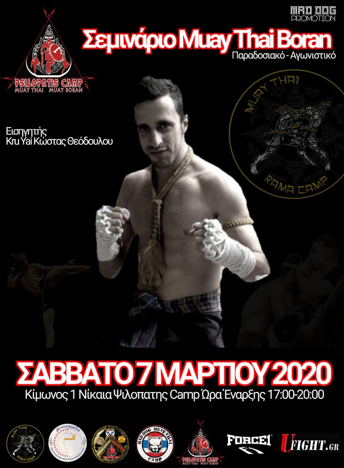 Το «Psilopatis Camp» μαζί με το «Mad Dog Camp» διοργανώνoυν επιμορφωτικό σεμινάριο στο Muay Thai Boran για την προαγωγή, προώθηση και εφαρμογή της Επιστήμης της πολεμικής τέχνης του Muay Thai Boran.