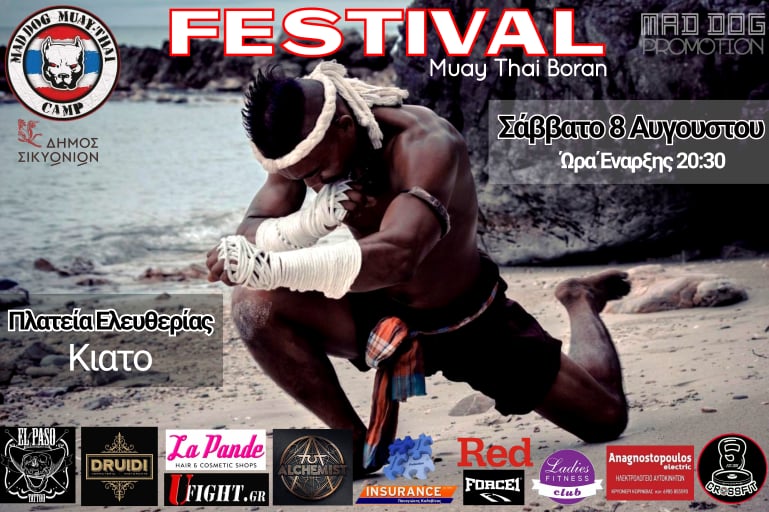 Το Σάββατο 8 Αυγούστου πραγματοποιείται Φεστιβάλ στην Κεντρική πλατεία του Κιάτου (πλατεία Ελευθερίας) με επιδείξεις Muay Thai Muay Boran Krabi Krabon, φόρμες από μικρούς και μεγάλους.