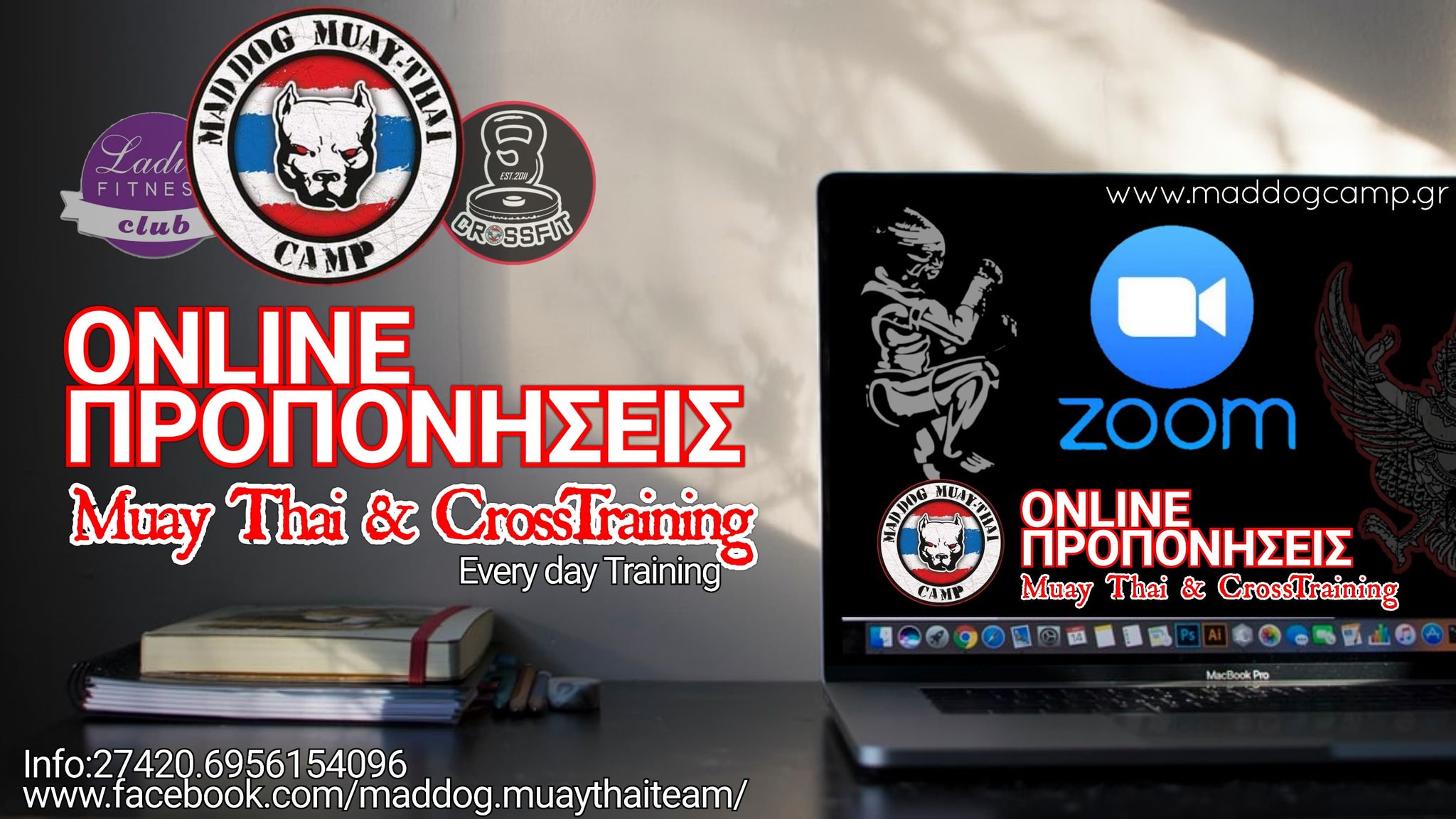 Περισσότερες πληροφορίες τηλεφωνήστε στο 27420.26357-694.6154096 ή επισκεφθείτε την σελίδα μας στο FACEBOOK : MAD DOG MUAY THAI CAMP