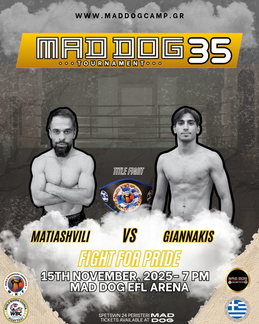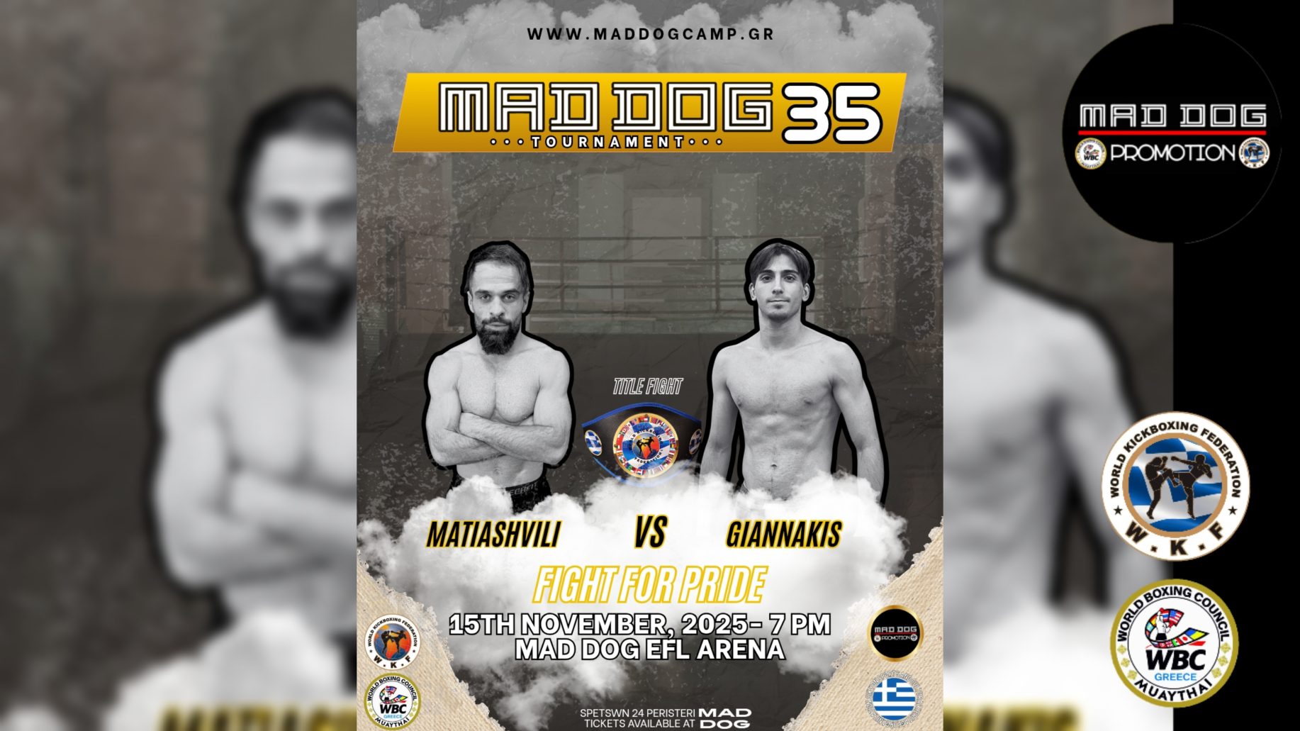Στο Mad Dog Promotion 35, οι θεατές θα έχουν την ευκαιρία να παρακολουθήσουν μία δυνατή αναμέτρηση ανάμεσα στον Γιώργο Γιαννάκη και τον Valerio Matiasvili, σε έναν αγώνα 5 γύρων με στόχο τον εθνικό τίτλο της WKF.