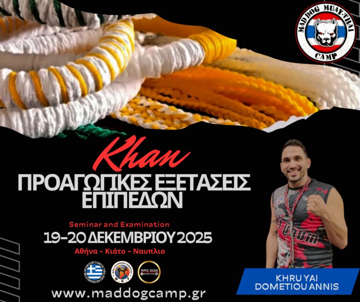Προαγωγικες εξετάσεις επιπέδων Khan και έγχρωμων ζωνών σε Αθήνα Κιάτο Ναυπλιο, υπό την αιγίδα του Khru Yai Άννη Δομετίου, στις 19-20 Δεκεμβριου.