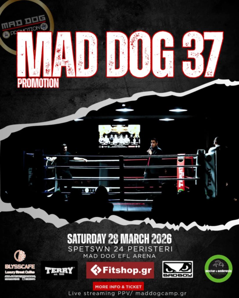 Το Mad Dog Promotion 37 είναι πλέον γεγονός και θα πραγματοποιηθεί στις 28 Μαρτίου στη Mad Dog EFL Arena, στο Περιστέρι (Μπουρνάζι, Σπετσών 24).