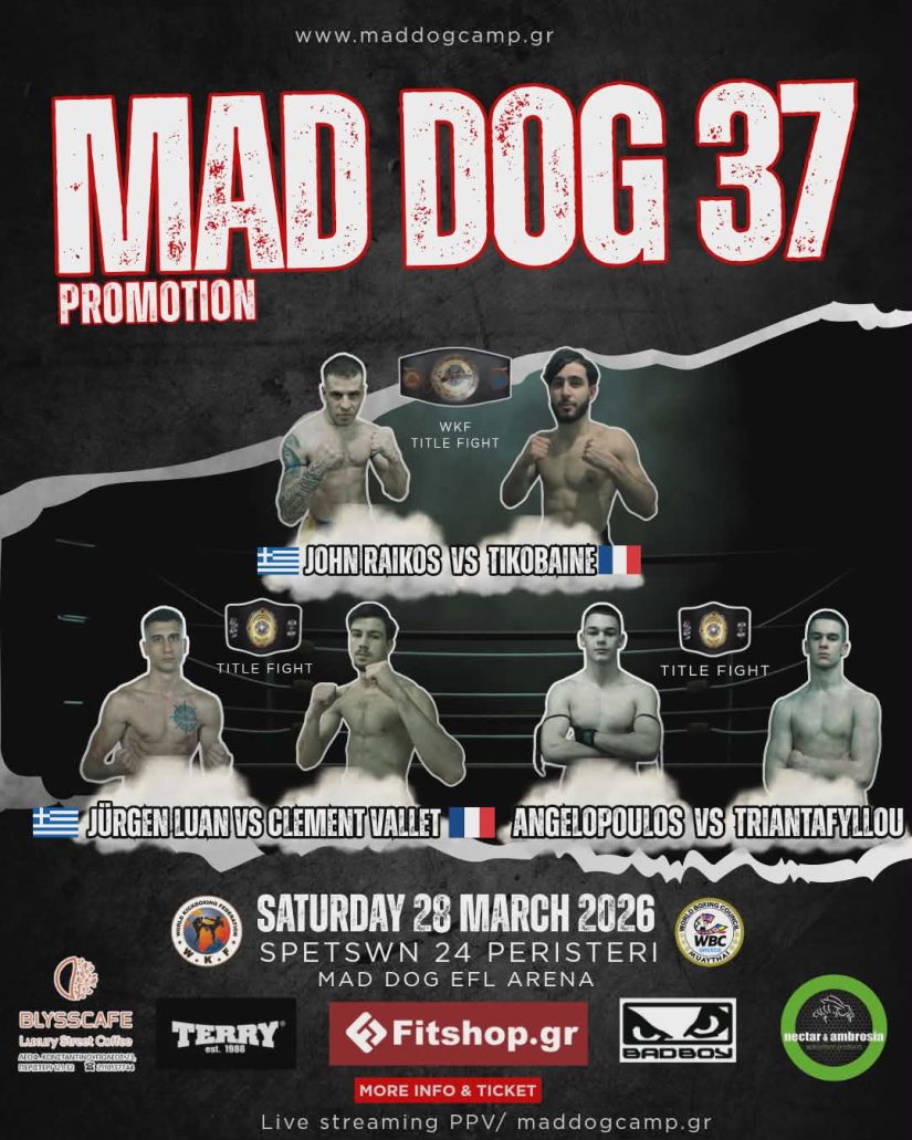Το Mad Dog Promotion 36 είναι πλέον διαθέσιμο on demand μέσα από το επίσημο κανάλι μας στο YouTube, δίνοντας την ευκαιρία στο κοινό να παρακολουθήσει όλους τους αγώνες που πραγματοποιήθηκαν στο προηγούμενο event.